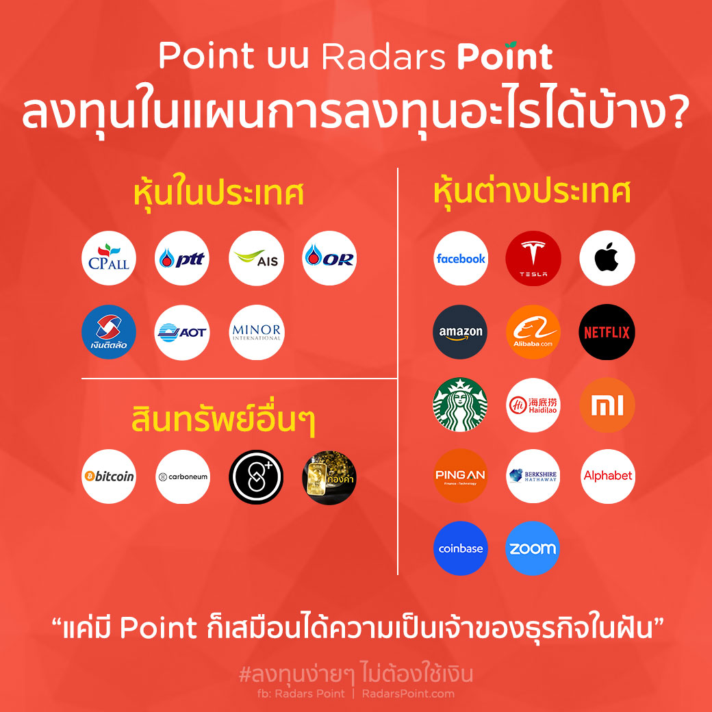 ช้อปปิ้งได้ Point บน Radars Point ลงทุนในแผนการลงทุนอะไรได้บ้าง ?